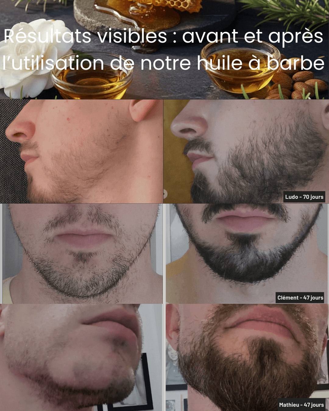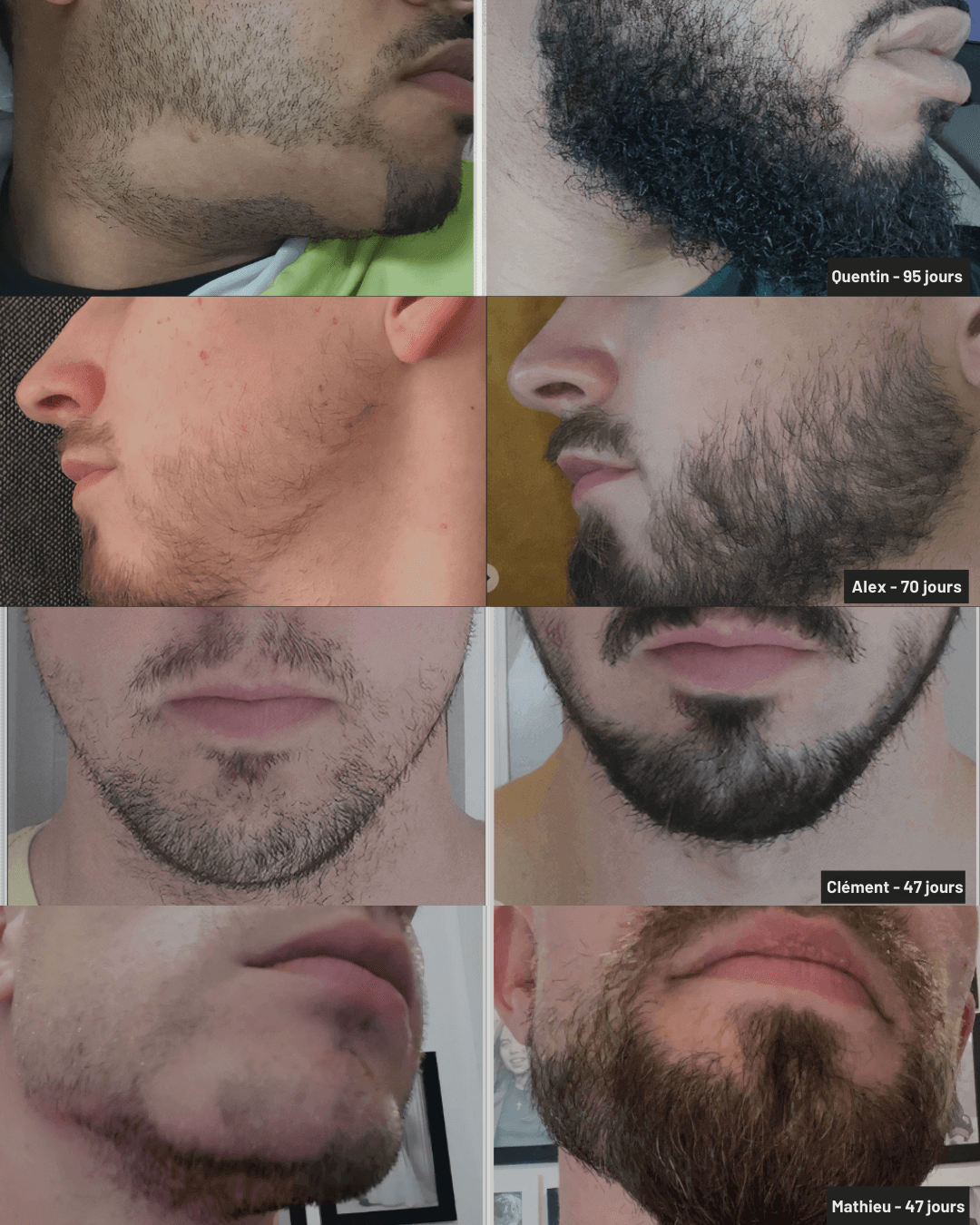 Quentin, Alex, Clément, Mathieu... They all had patchy, uneven, frustrating beards. In just a few weeks with our complete range, they transformed their beards, creating the optimal conditions for thick, vigorous growth.