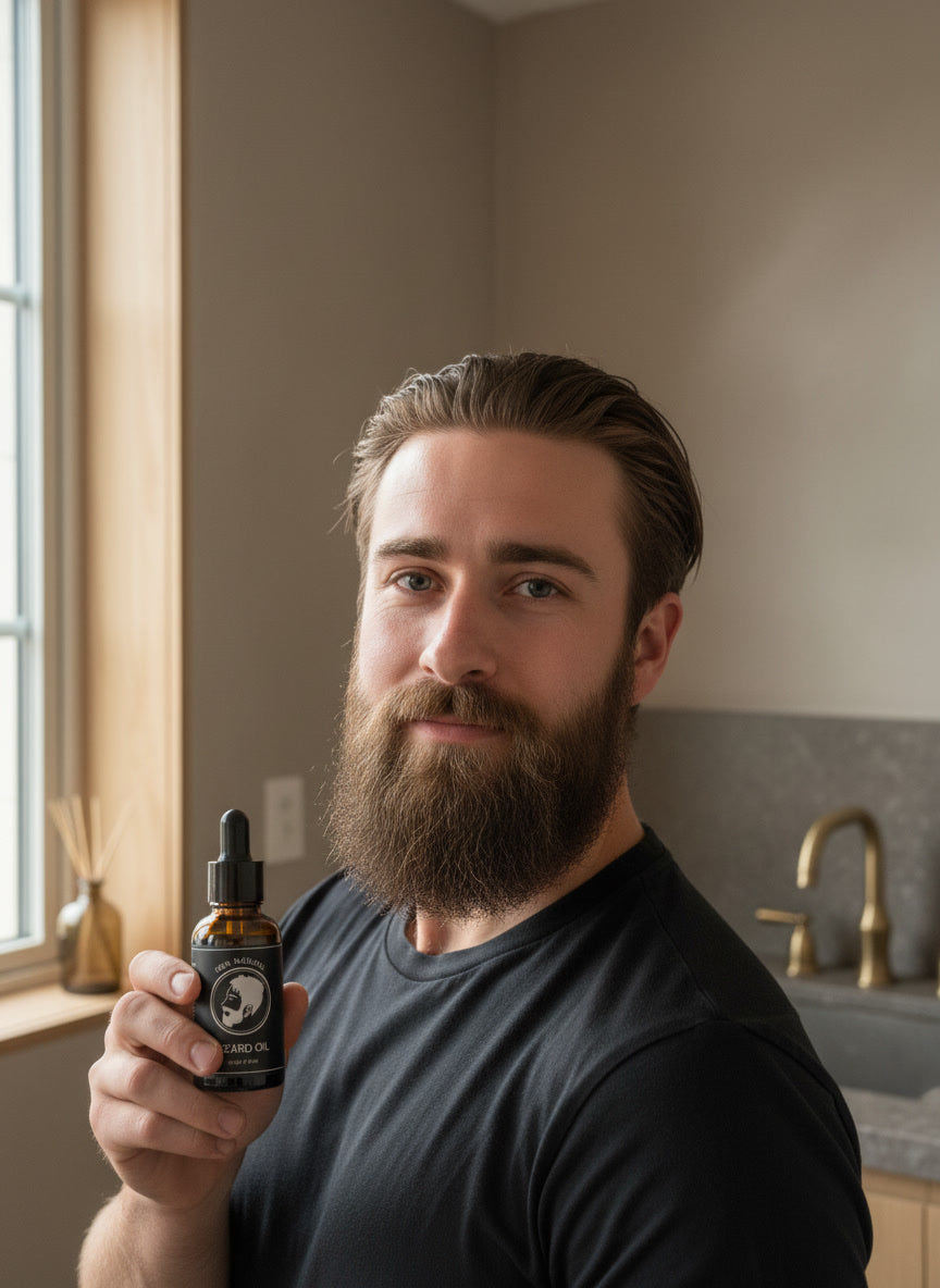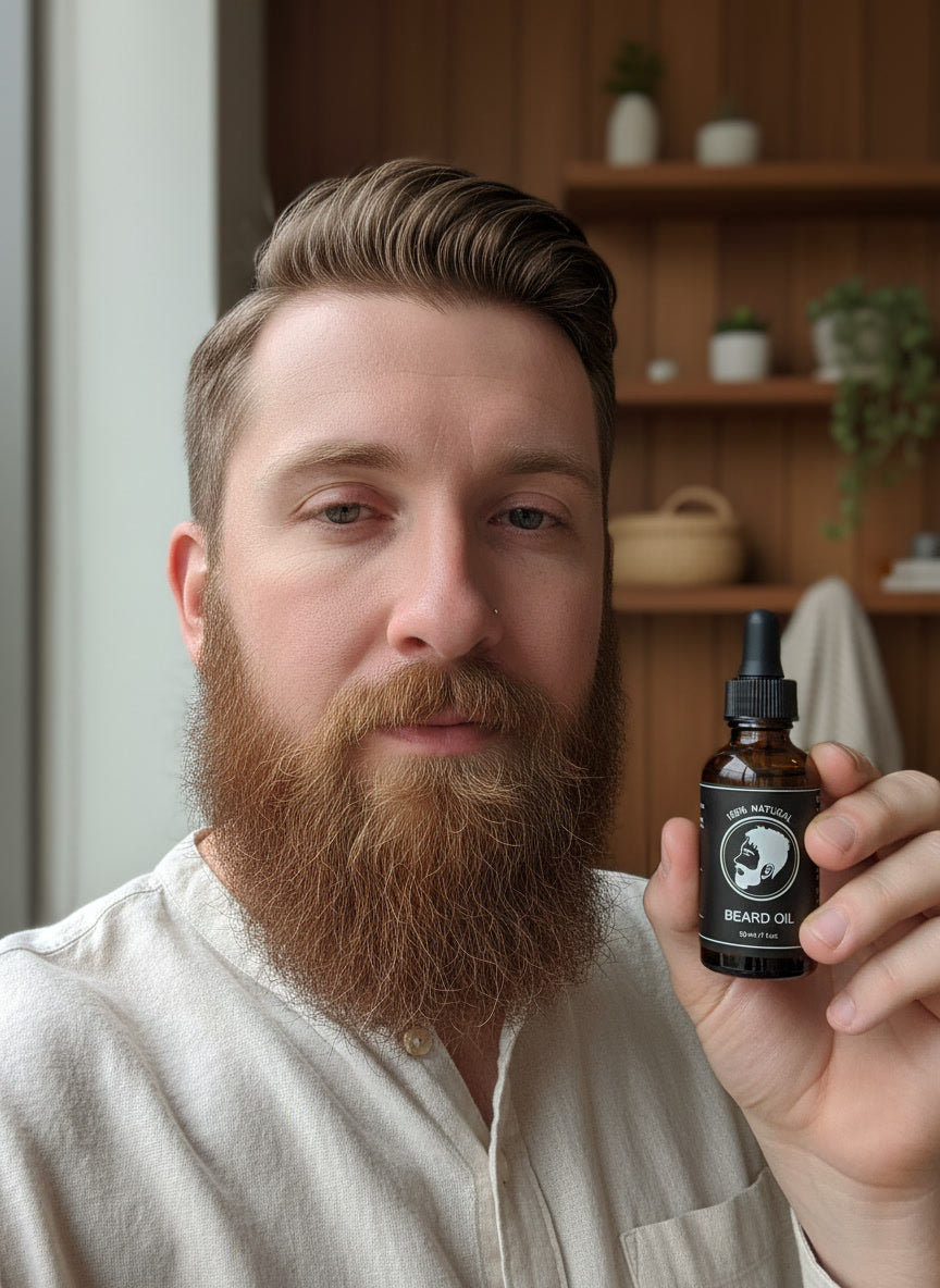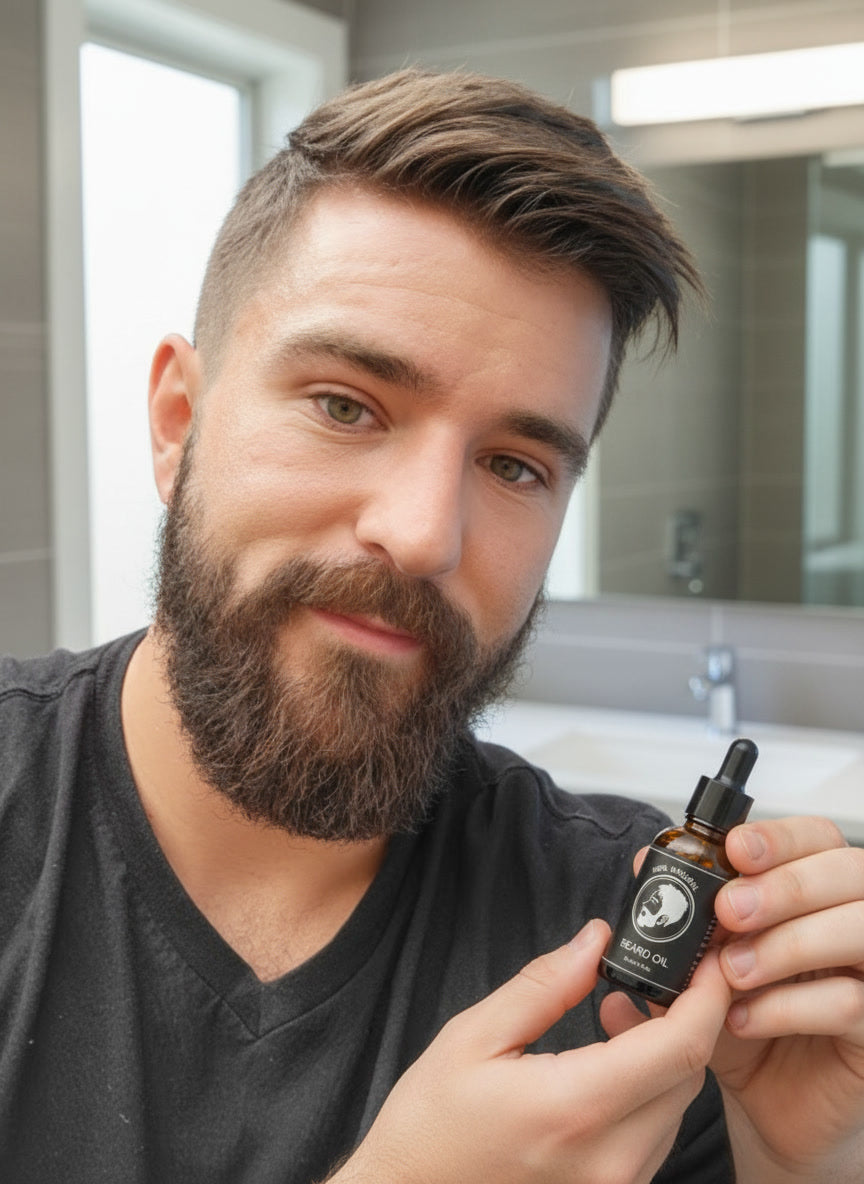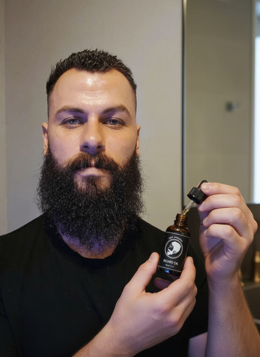 Apply 3-5 drops to a slightly damp beard after showering. Warm the oil between your palms, then massage evenly from root to tip. Use a comb to distribute and style. For longer beards, increase to 6-8 drops.